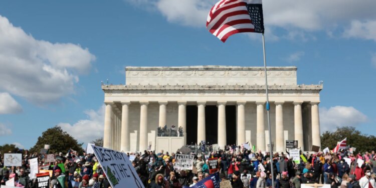 Already, early on Saturday, marchers in Washington, DC, gathered around landmarks such as the Lincoln Memorial and the Washington Monument, holding signs and waving papier-mache effigies of the Trump administration.