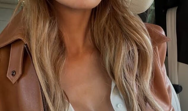 Olivia teamed the look with a tan leather jacket, flared jeans and a black Hermes handbag