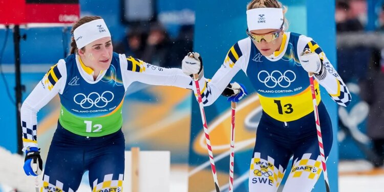 Sweden had a chance to secure a gold medal in the women’s 4×7.5-kilometer relay, but Ebba Andersson crashed hard. When Andersson got up, she realized she had lost her right ski and couldn’t get it back on.