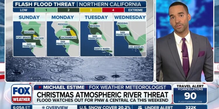 Three rounds of precipitation are expected to cause travel hassles across California ahead of the holiday, as a parade of storms will bring heavy rain, snow and powerful winds, with an atmospheric river raising flash flooding concerns. FOX Weather will have the latest updates as the storm system moves through.