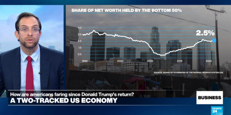 It’s been one year since Donald Trump started his second term as US president, and he’s pointing to the country’s strong GDP growth rate and stock market performances to paint a glowing picture of the economy. But a closer look shows that while activity is booming, it’s mostly benefitting the country’s wealthier households. Also in this edition, we see how Trump’s tariffs have pushed German winemakers to look to China for their exports.