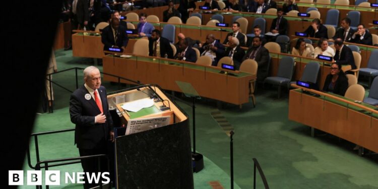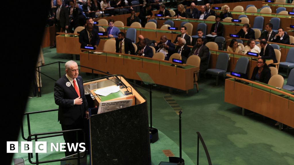 [ad_1] <br>Dozens of people filed out of the room in protest at the United Nations General Assembly in New York. <br>[ad_2] <br><a href="https://www.bbc.com/news/videos/cp98jkpkp84o?at_medium=RSS&at_campaign=rss">Source link </a>
