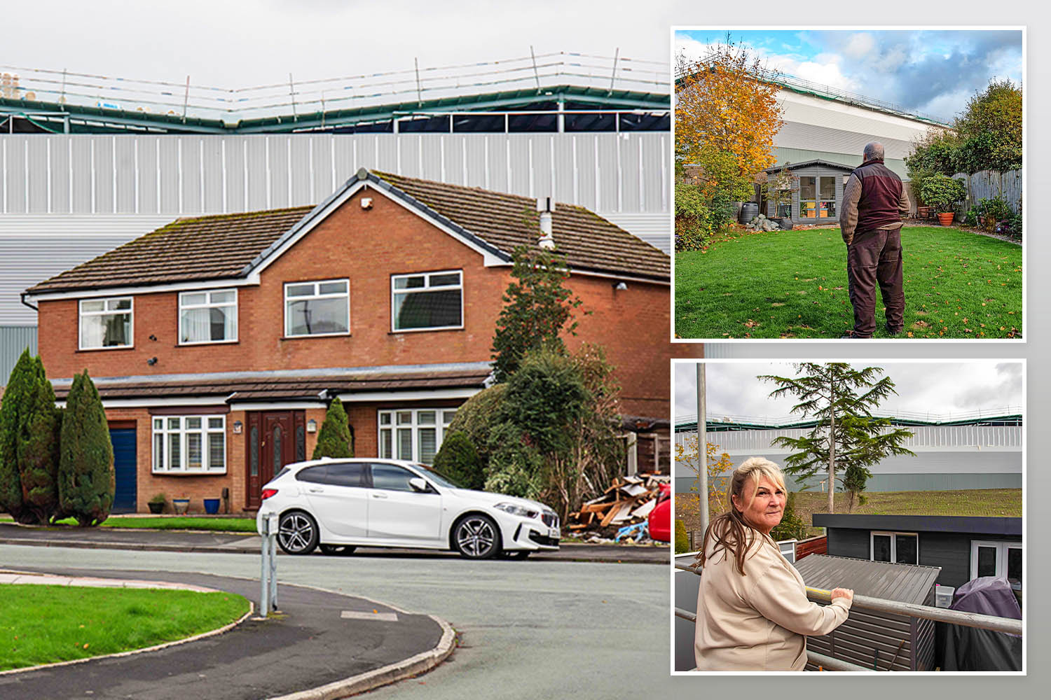 Paula Boardman, 47, lives with her husband and two kids in a house that backs onto the imposing warehouse, picture from before the steel walls were addedCredit: SWNS