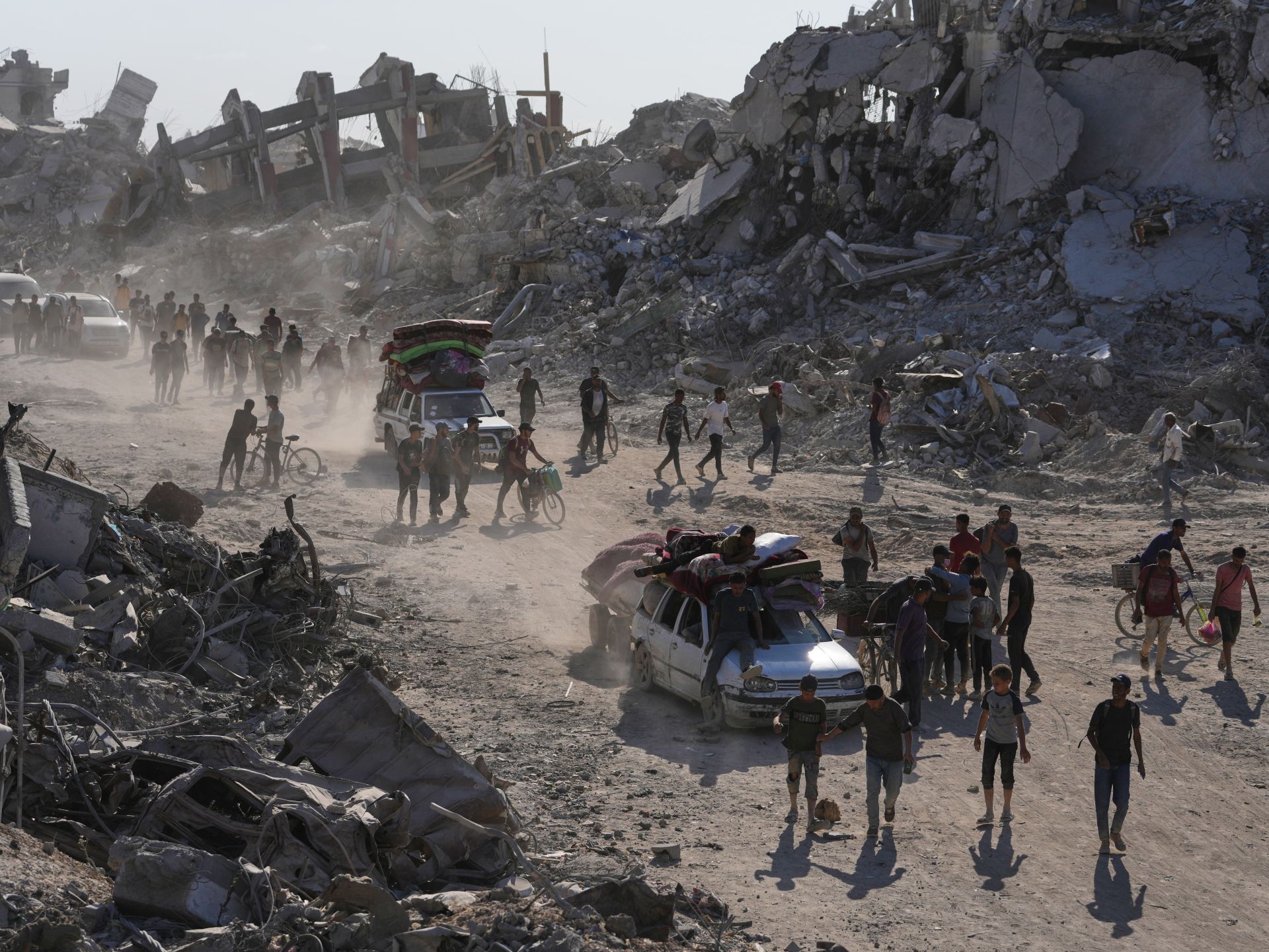 Al Jazeera’s Tareq Abu Azzoum, reporting from Nuseirat, described scenes of “children, women, elderly, cars, vans, donkey carts loaded with furniture” heading towards Gaza City. “Families removed their makeshift tents to take and reset them over the ruins of their destroyed homes,” he said.