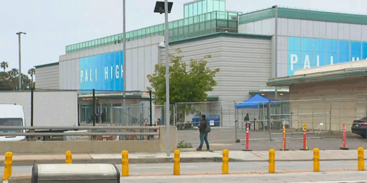 Palisades Charter High School is seen at its temporary location in Santa Monica on April 22, 2025. (KTLA)