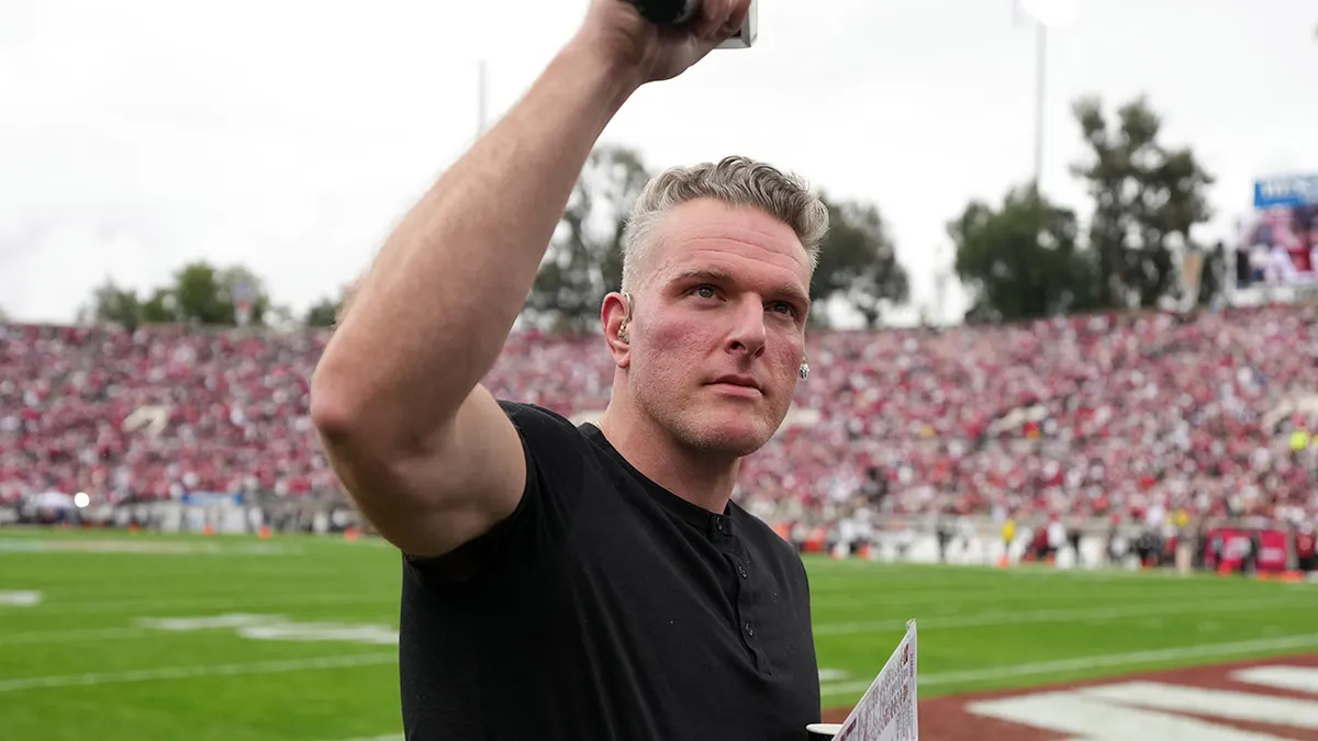 Pat McAfee at the 2025 Rose Bowl and quarterfinal game of the College Football Playoff at Rose Bowl Stadium on Jan. 1, 2026. (Kirby Lee/Imagn Images)