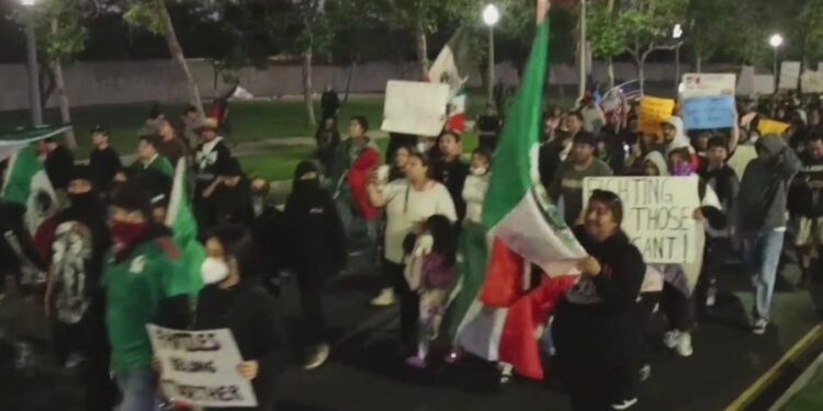 Protests against immigration raids stretched into the night in Orange County with demonstrators taking to the streets of Santa Ana for the second straight day.