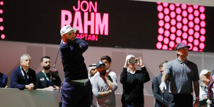 Jon Rahm in action during the first round of play at LIV Golf Riyadh at the Riyadh Golf Club in Riyadh, Saudi Arabia, on Feb. 4, 2026. (Hamad I Mohammed/Reuters)