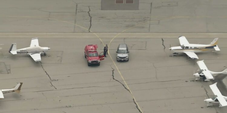Video from Sky5 at the scene showed little activity in or around the airport by 1:30 p.m.