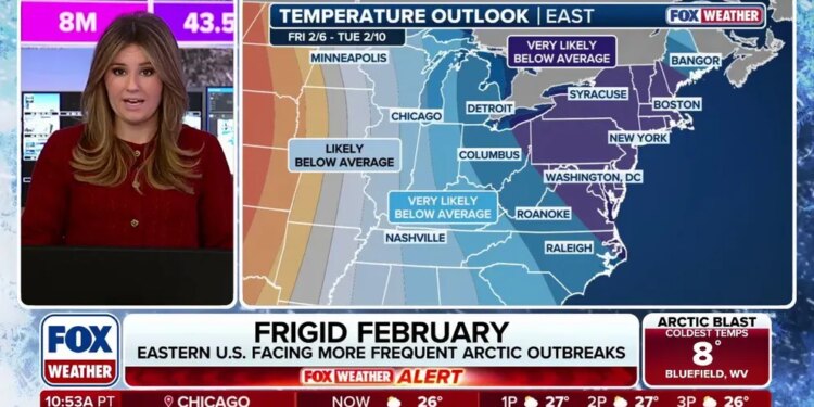 This bout of frigid air will reach the east more often than the last round as the polar vortex weakens, the FOX Forecast Center said.