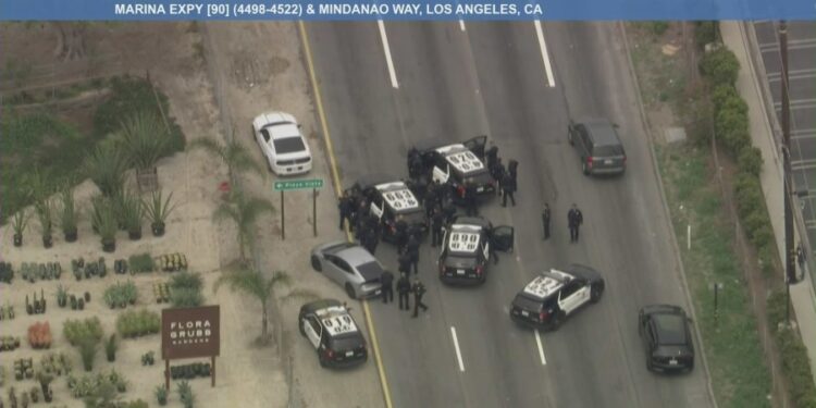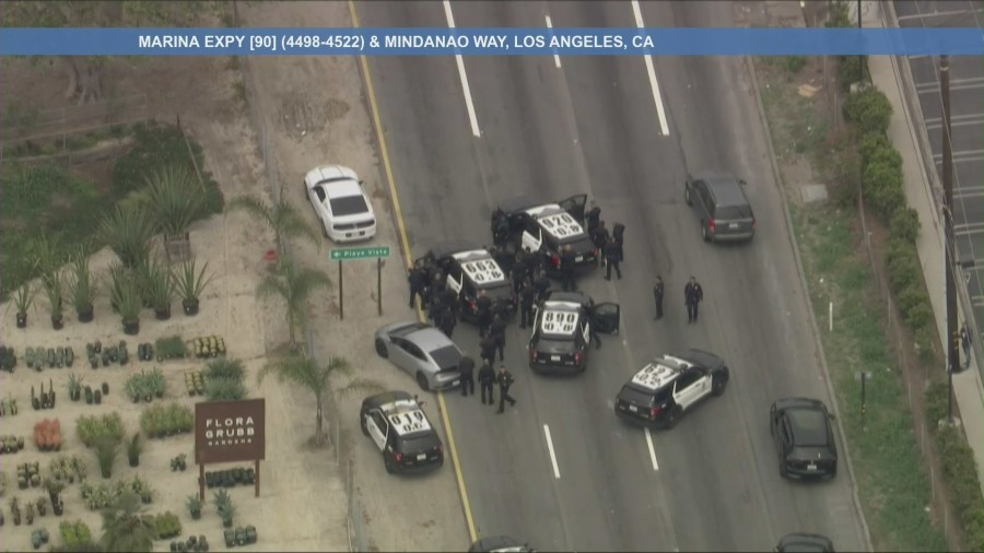 Shortly thereafter, the driver pulled over alongside the 90 Freeway near Marina del Rey, and numerous police vehicles surrounded the Mustang. The driver, meanwhile, remained in the Mustang.
