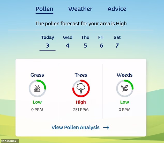 ‘Seven tree pollen variants start causing havoc in February,’ Kleenex explained.