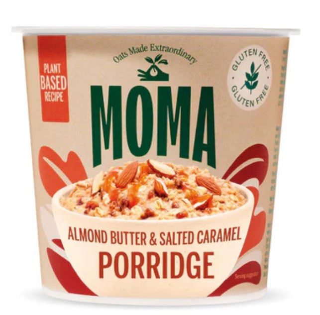 - MOMA Almond Butter & Salted Caramel Porridge Pot 55g – pack sizes: 1pk 8pk 12pk, lot number: M5296, M5297, M5303, M5304, M5315, M5339, M5342