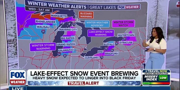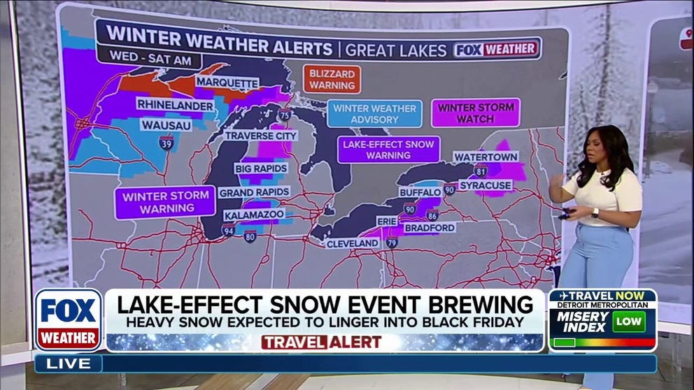 Thanksgiving travel could be snarled across the Great Lakes Snowbelts, as the FOX Forecast Center tracks what it expects to be the most significant lake-effect snow event of the season thus far beginning Wednesday and lasting through Thanksgiving Day and into Black Friday.