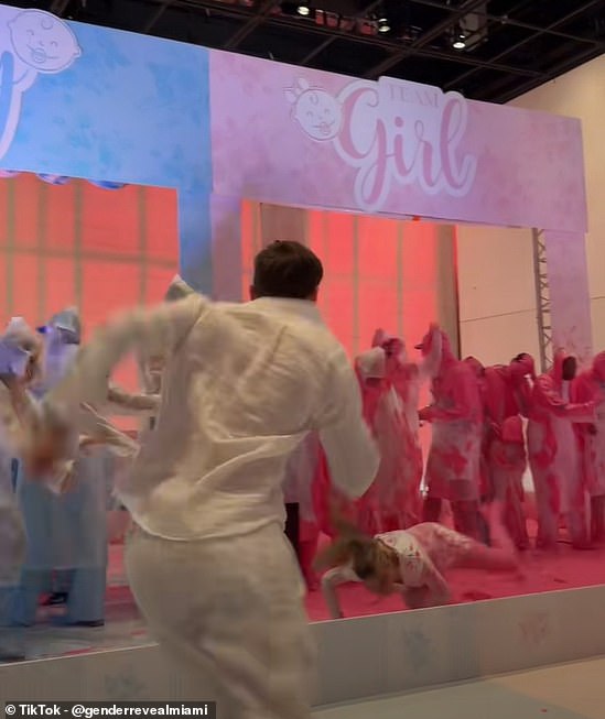 The 28-year-old YouTube starlet held a ceremony in which she stood between two groups of people under arches reading ‘Team Boy’ or ‘Team Girl.’