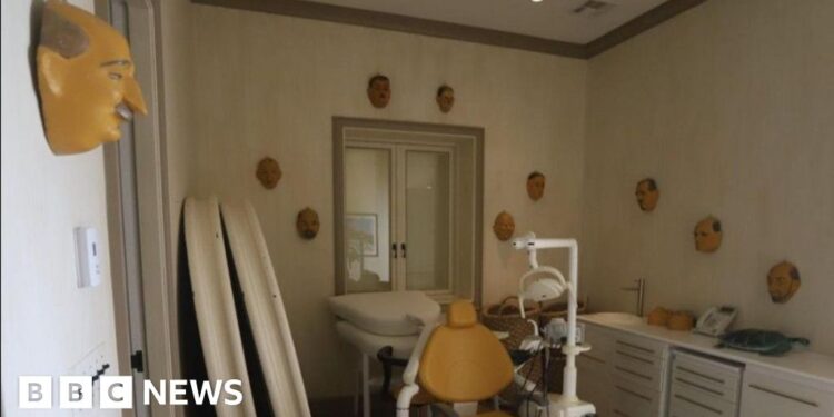 The new images from 2020 also show what appears to be a dental chair and a room with a black chalkboard on which is scrawled with words including “truth”, “deception” and “power”. Some of the words have been redacted.