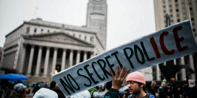 A couple of miles away, just as the demonstration began, an Associated Press photographer witnessed heavily armed officers — at least one in Border Patrol uniform — approach a person who had been following them. Two of the agents had long guns out when they ordered the person to stop following them, telling him it was his “first and final warning.”