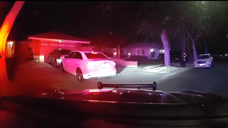 In the officer’s body-worn camera footage, the man and a female passenger can be seen in the car as the officer instructs the driver to turn the vehicle off.