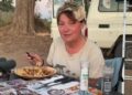 MasterChef star Khanh Ong was chic in a blue satin kimono-style top worn with navy trousers.