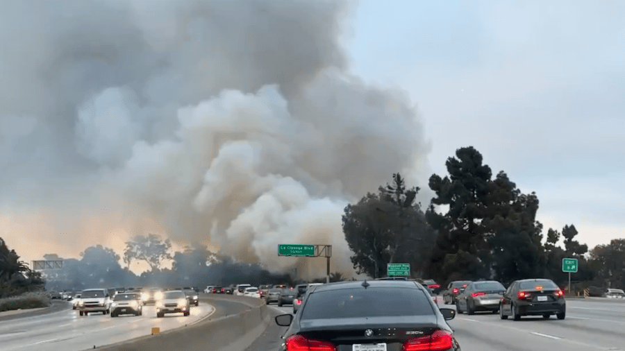 “Traffic on the 10 Freeway will be impacted by both smoke and emergency operations,” said LAFD’s alert. “Drivers are advised to seek alternate routes between National Boulevard to Palms Boulevard.”