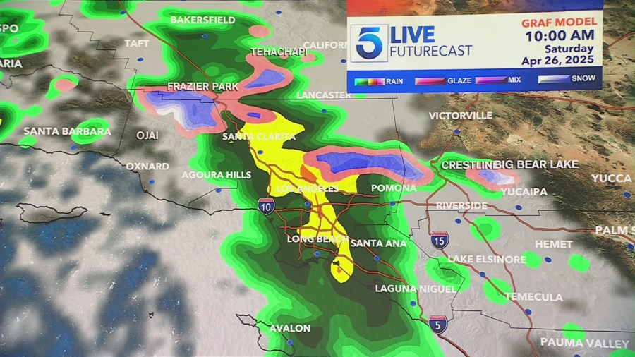 A system of low pressure is bringing rain and unseasonably cold temperatures to most of Southern California, and communities at higher elevations will likely see some snow.
