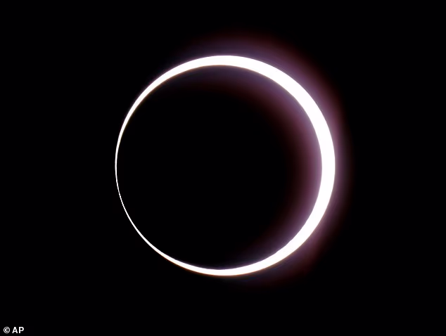 Dr Shyam Balaji, of King’s College London, told the Daily Mail: ‘An annular solar eclipse occurs when the Moon passes directly in front of the Sun but is slightly farther from Earth in its elliptical orbit.
