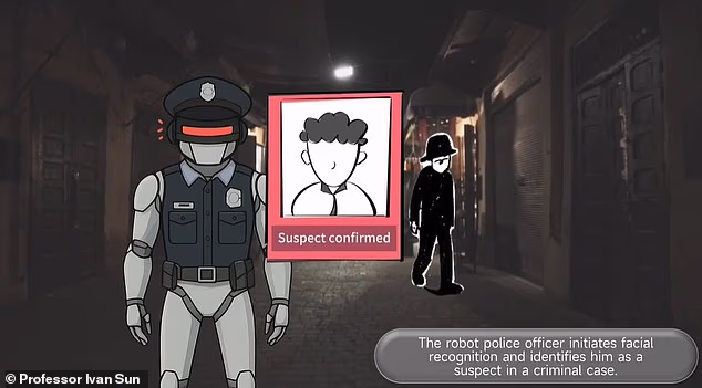 It reads: ‘Amidst intensifying demands on law enforcement and the growing complexity of crime, jurisdictions worldwide have begun integrating artificial intelligence (AI)–powered robots into policing operations.