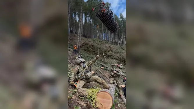 The rugged hillside in Mount Hood National Forest proved to be a difficult area for an emergency rescue, though it proved no challenge to the Oregon Army National Guard.