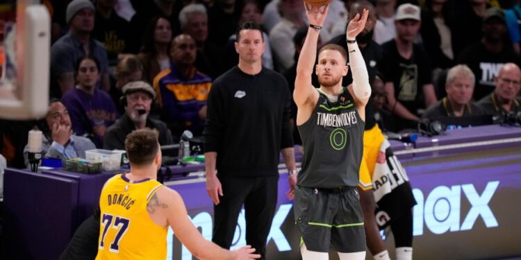 The Wolves’ terrible shooting kept it close, and the Lakers took their first lead when Doncic led a rally late in the third.