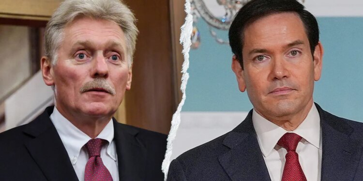 Kremlin spokesman Dmitry Peskov, left, and Secretary of State Marco Rubio. (Maxim Shemetov/Reuters; Ken Cedeno/Reuters)