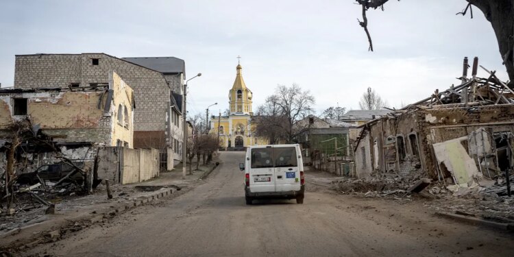 The city was briefly occupied during the opening months of Russia’s full-scale invasion in 2022 before being liberated by Ukrainian forces later that year, a history Ukrainian officials say Moscow has repeatedly tried to obscure through disinformation.