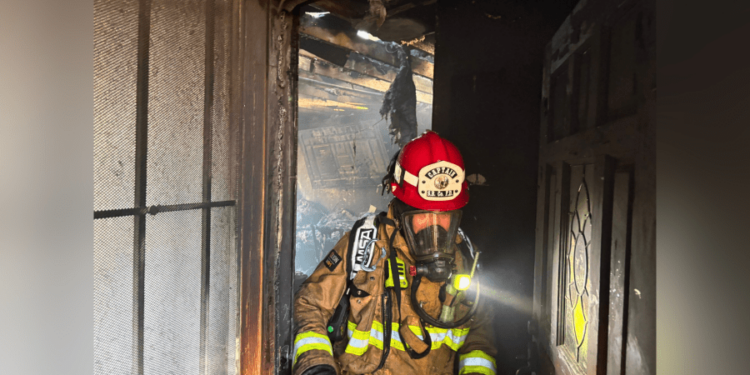 “With flames already involved in a detached garage-dwelling unit and now threatening the house next door, crews carried hose lines both into the home and around the side to stop the fire from torching the neighboring structure,” detailed the San Bernardino County Fire Department in an X post.