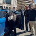Gellar looked stylish in a cream ensemble while Rocky, who is the spitting image of his dad, smiled and chatted.