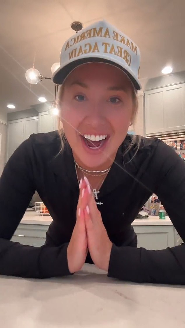 ‘I have shed so many tears,’ said Savannah, who donned a white Make America Great Again hat for the video