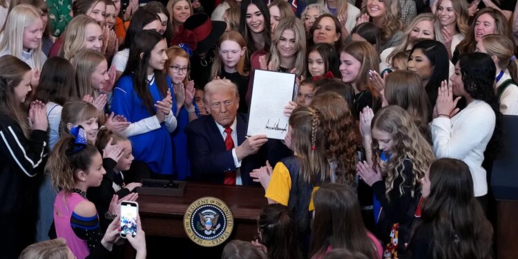 President Donald Trump returned to office and unleashed a volley of countermeasures to “save women’s sports.” But many Democrats fought back, even as a majority of their base sided with Trump on the issue, per multiple polls.
