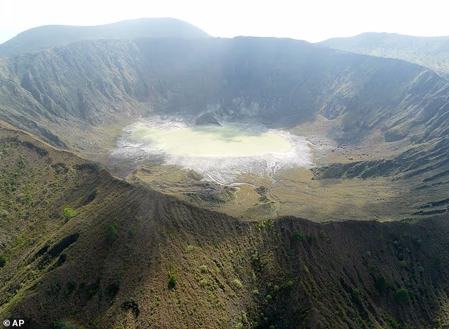 During recent inspections, scientists reported that the crater lake, normally green and dominated by algae, had turned grayish, suggesting elevated levels of sulfates and silica in the water.