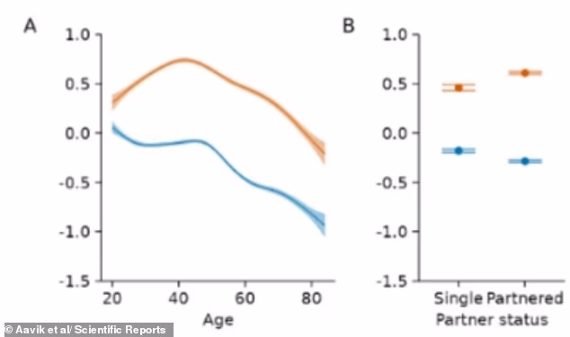 ‘The mid–life peak in men suggests that factors beyond biological ageing, such as relational dynamics, may play a more significant role than initially anticipated,’ the researchers wrote.