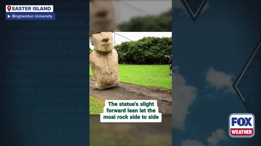 The team first produced high-resolution 3D models of the moai and then built a more than 4-ton replica of one of the statues. Officials said they then had 18 people move the statue more than 300 feet, or the length of a football field from end zone to end zone, in only 40 minutes.