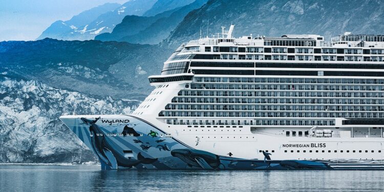 The Norwegian Bliss cruise ship passes through John Hopkins Inlet in Glacier Bay, Alaska on Thursday, July 11, 2019.  (Tim Rue/Bloomberg via Getty Images)