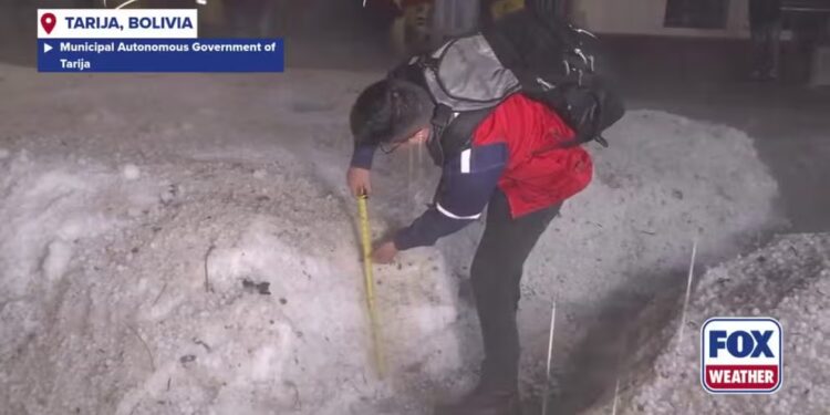 TARIJA, Bolivia – A massive thunderstorm that buried the city of Tarija in southern Bolivia in feet of hail left behind damage to buildings and cars around the city.