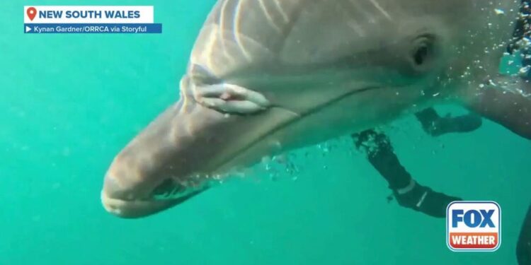 NEW SOUTH WALES, Australia – Marine rescue groups in Australia worked quickly to free a dolphin calf entangled in a fishing net, successfully reuniting the baby with its mother.