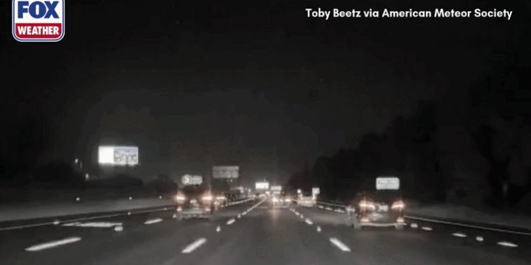 A meteor lit up the sky over Palo Alto, California, while a driver was on the road on Sunday.