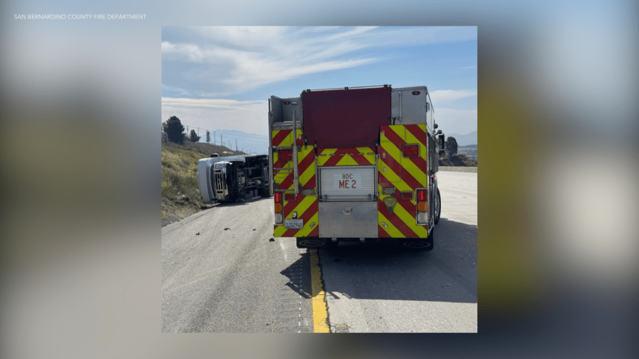 Details were scarce, but San Bernardino County Fire said on its X account that a bus was on its side at the Kenwood Avenue exit on the southbound lanes of the 15 near Keenbrook. It wasn’t clear if any other vehicles were involved.