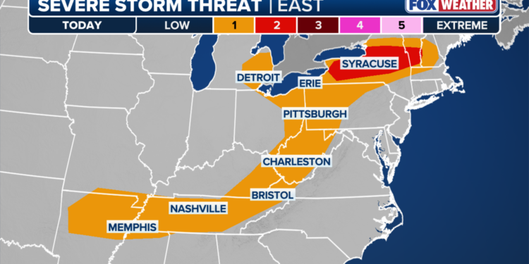 Across the Northeast, a Level 2 out of 5 severe storm risk is in place from western New York into southern Vermont.
