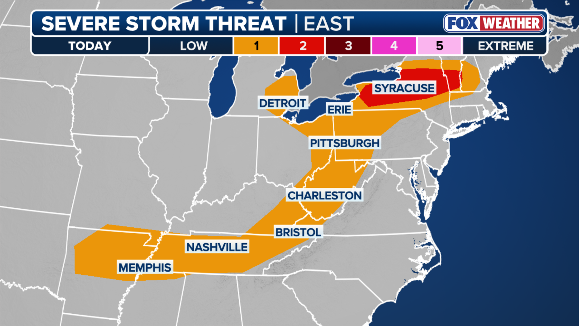 Some major cities in the threat zone include, Buffalo, Syracuse, and Albany, New York, as well as Pittsburgh, Pennsylvania.