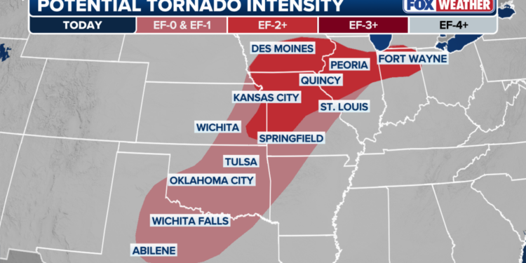 According to the FOX Forecast Center, storms could fire along a dryline — the boundary between dry air from the west and warm, moist air from the Gulf — that’s expected to form Friday across western Oklahoma into West Texas.