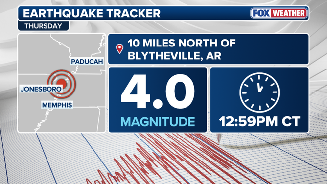 The USGS Community Internet Intensity Map, which tracks shaking, damage and intensity, reported the shakes were felt in six U.S. states: Missouri, Arkansas, Tennessee, Kentucky, Illinois and Mississippi.