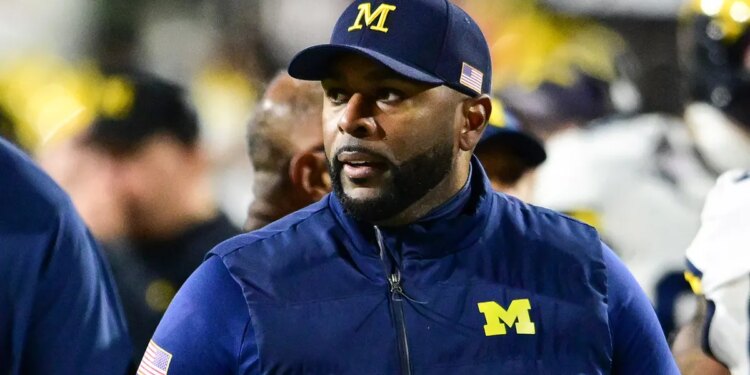 Sherrone Moore of the Michigan Wolverines during the second half against the Maryland Terrapins at SECU Stadium Nov. 22, 2025, in College Park, Md. (Chris Bernacchi/Diamond Images)