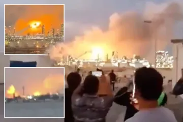 Moment Iran blitzes huge oil refinery as missile blast sparks inferno