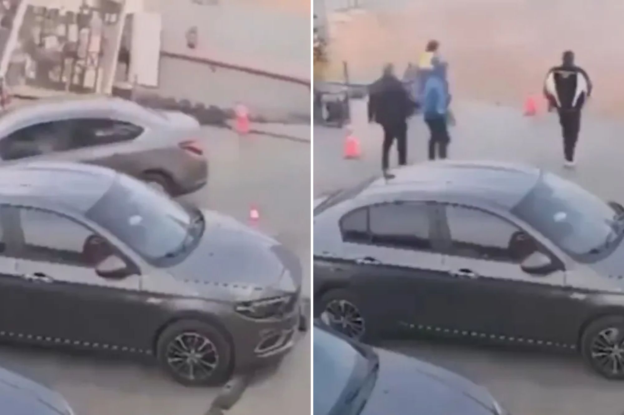THIS is the harrowing moment an entire petrol station was “swallowed” by a landslide in Egypt.